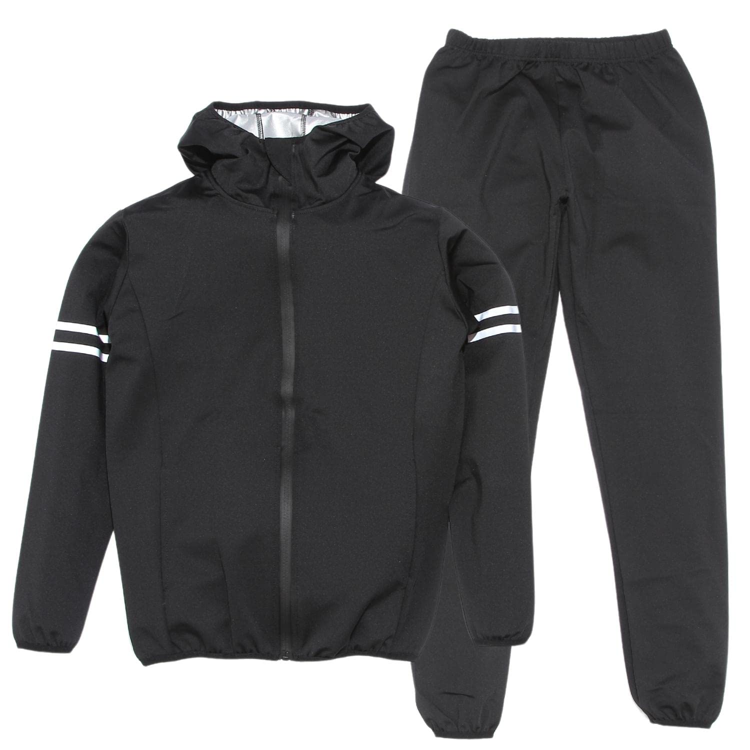 [Mie-Mie] スポーツウェア 上下セット サウナスーツ サウナウェア 防水 蓄熱 発汗 ランニングウェア フィットネス 減量 ジム メンズ レディース (XL, ブラック)
